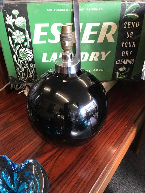 Vintage Black Glasslamp Base - in the manor of Jaques Adnet