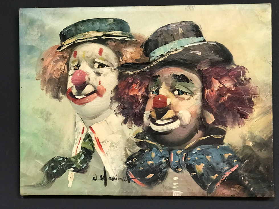 ORIGINAL OIL PAINTING ON CANVAS OF 2 CLOWNS - SIGNED "WILLIAM MONINET"